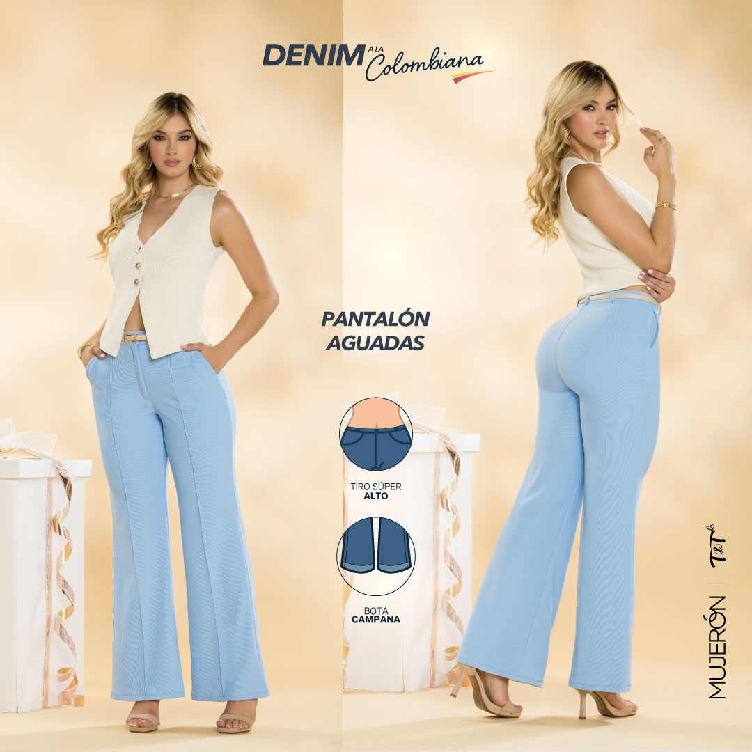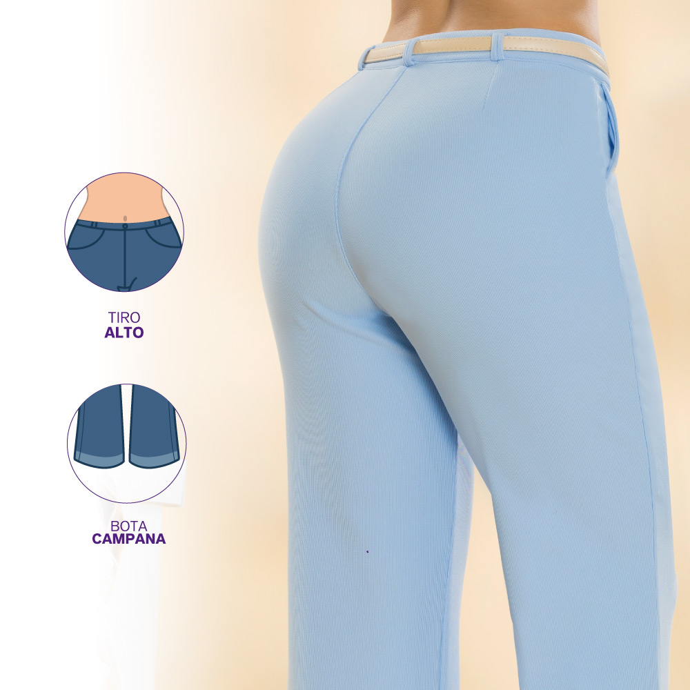 Destaca tu estilo con el pantalón que combina tendencia, comodidad y actitud. | – Fit pantalón de tiro alto que estiliza y define la silueta. – Bota campana: moderna, con movimiento y presencia. – Tela rib pesado licrado: firmeza y confort durante todo el día. Vive tu look con confianza Mujerón.