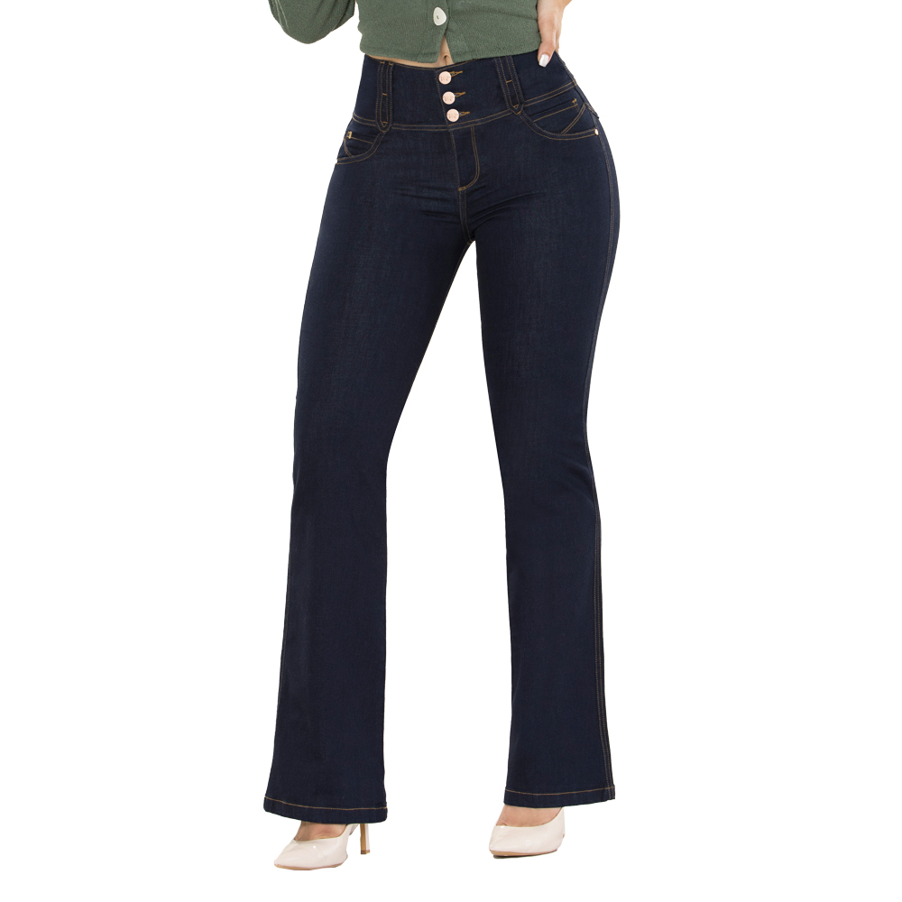 Realza tu figura con el jean que combina poder y sofisticación. | – Fit campana de tiro alto que estiliza tus piernas. – Color azul industrial moderno y versátil. – Tela índigo licrado que moldea y se adapta a ti. Vive el poder y la elegancia del estilo Mujerón.