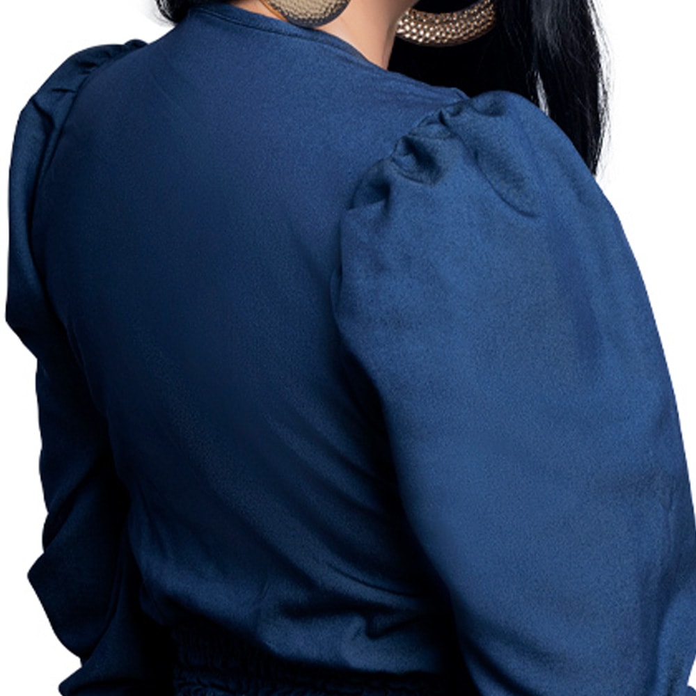 Blusa manga 3/4 diseño princesa para dama elaborada en algodon y poliester en color azul medio. Silueta confort, cuello en V.
