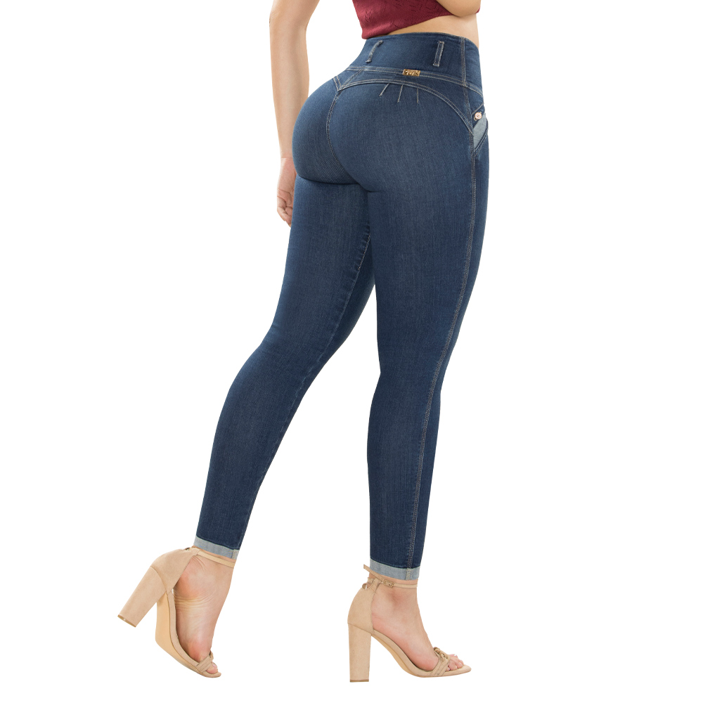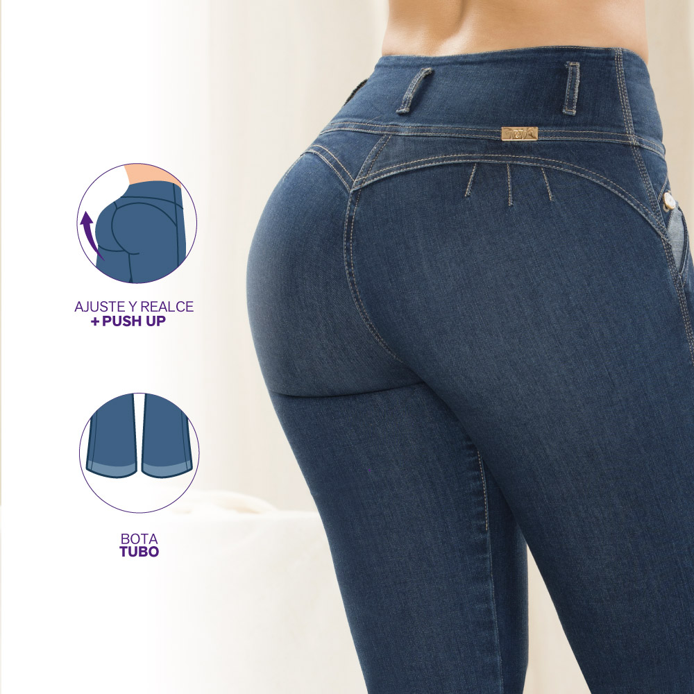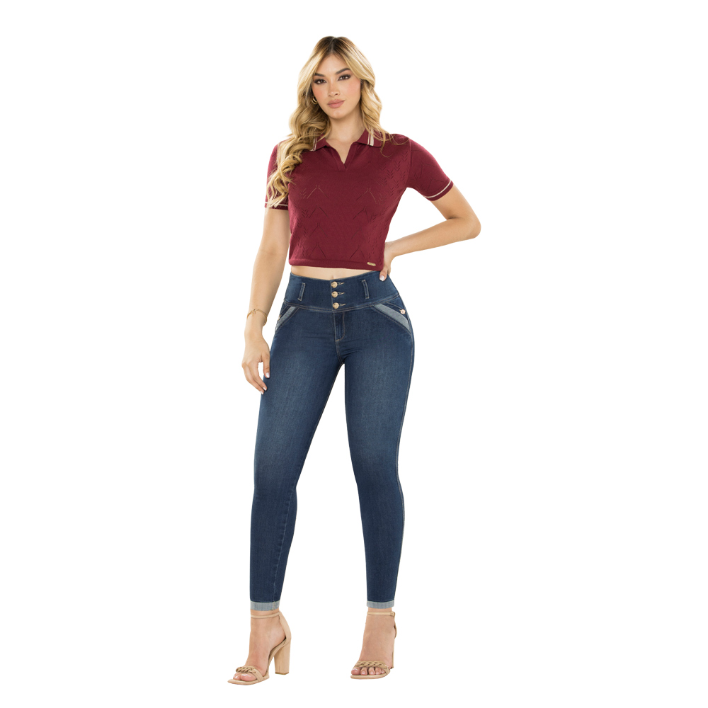Eleva tu estilo diario con el jean que combina comodidad y actitud. | – Fit tobillero de tiro alto que estiliza la figura y alarga las piernas. – Color azul medio: clásico, moderno y fácil de combinar. – Tela índigo súper licrado que se adapta a tu silueta con comodidad y firmeza. Vive la elegancia práctica y empoderada del estilo Mujerón.