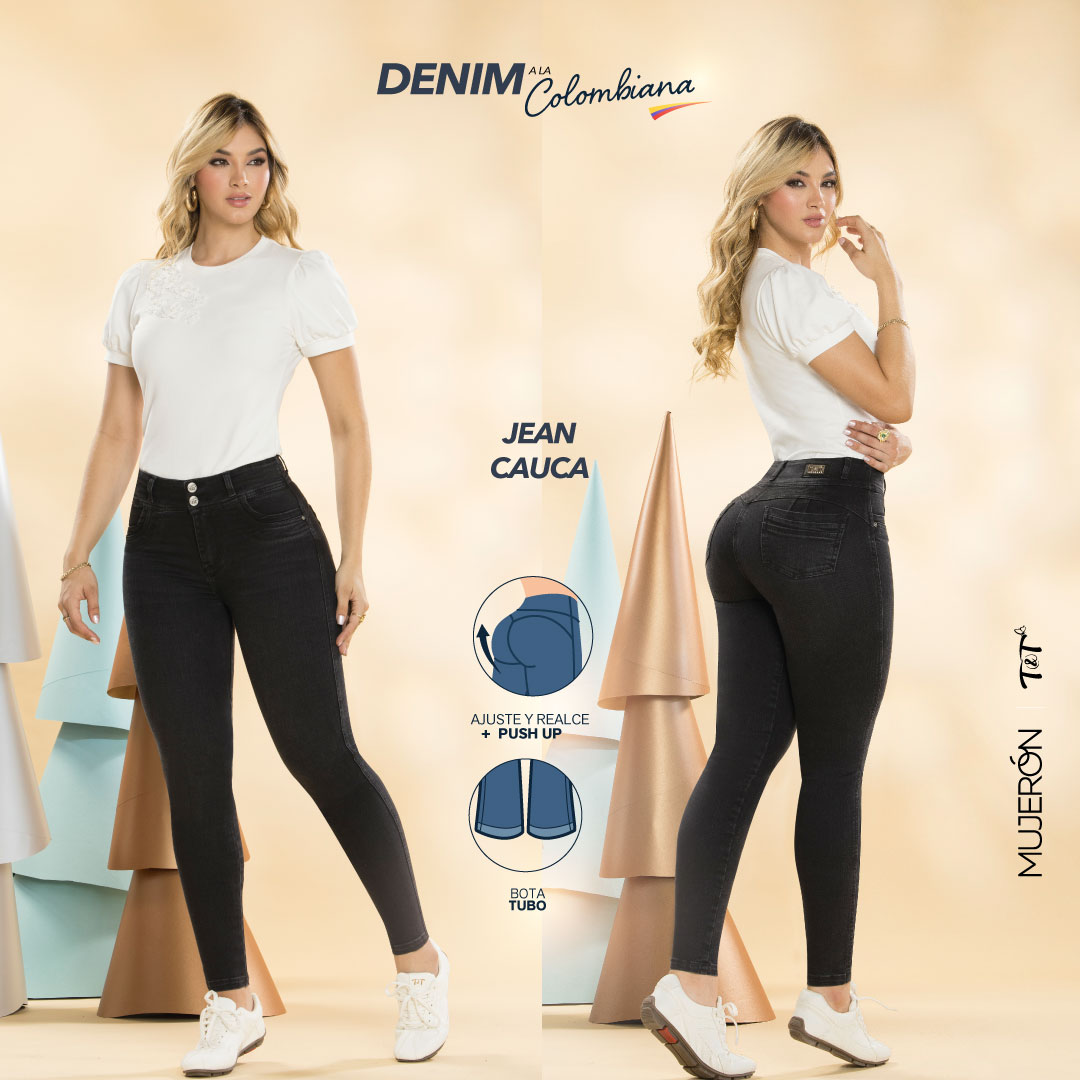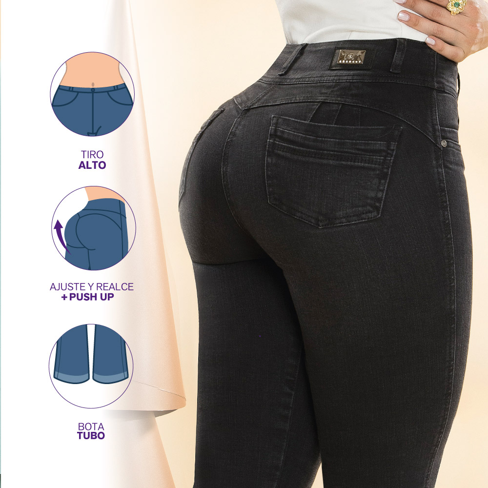 Poder y estilo en un jean que abraza tus curvas con clase. | – Tiro alto que estiliza y realza tu figura. – Tela índigo súper licrado para máximo confort y ajuste perfecto. – Color gris oscuro: versátil, moderno y sofisticado. Vive la elegancia que potencia tu presencia Mujerón.