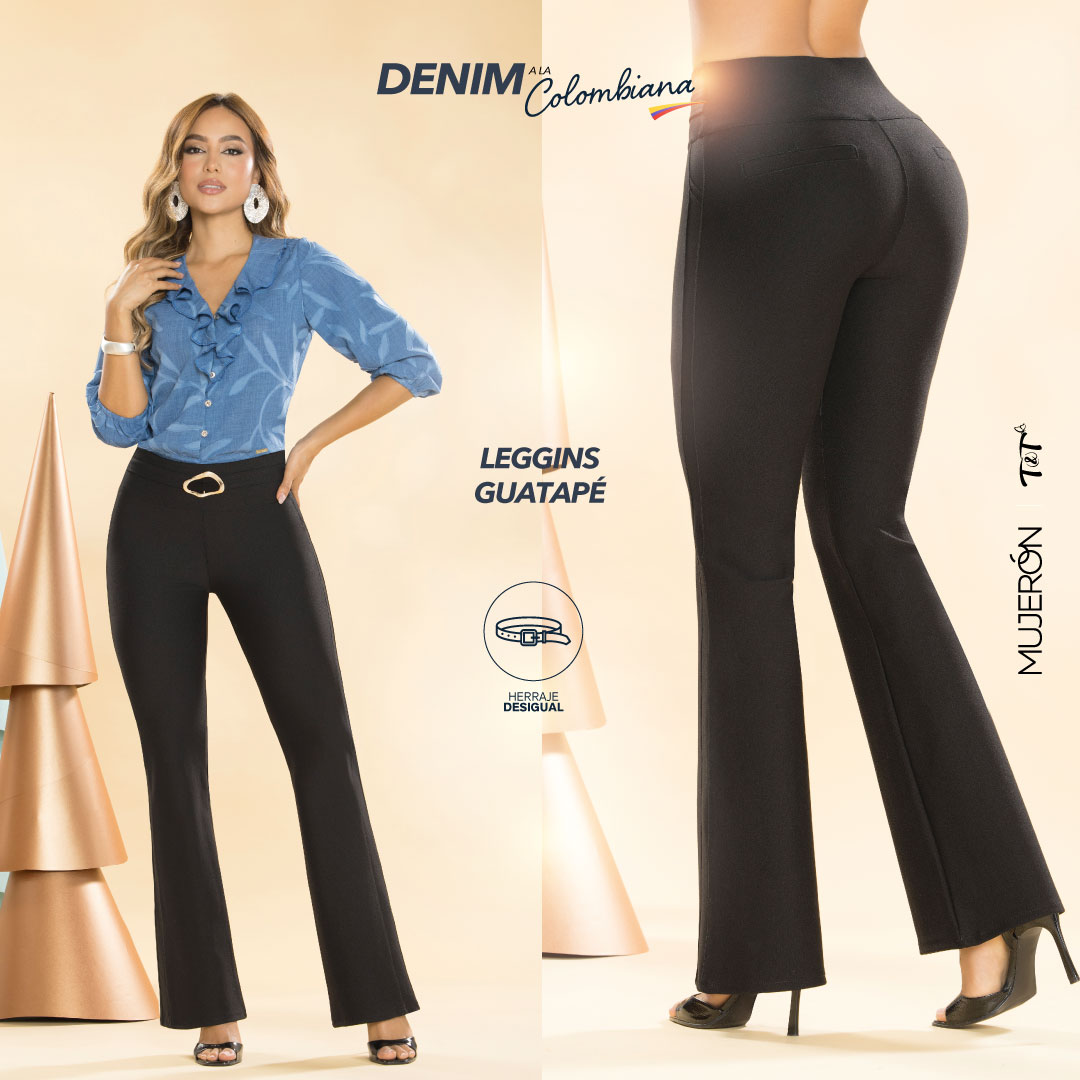 Resalta tu figura con el leggin que combina estilo, confort y actitud. | – Fit pantalón de tiro alto que moldea y estiliza la silueta. – Bota campana: tendencia y movimiento en cada paso. – Tela punto roma: suave, elástica y con estructura perfecta. Vive tu look con confianza Mujerón.