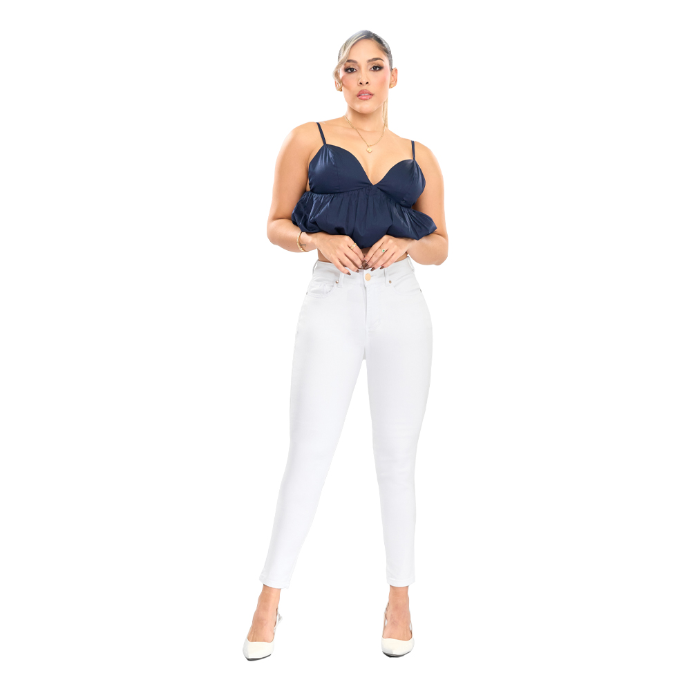 El Jeans 16377 Blanco de MISSHOP es una pieza esencial para mujeres que buscan estilo, comodidad y una silueta definida. Su fit skinny junto al tiro alto crea una línea estilizada que potencia tu figura y eleva tu confianza con cada movimiento.