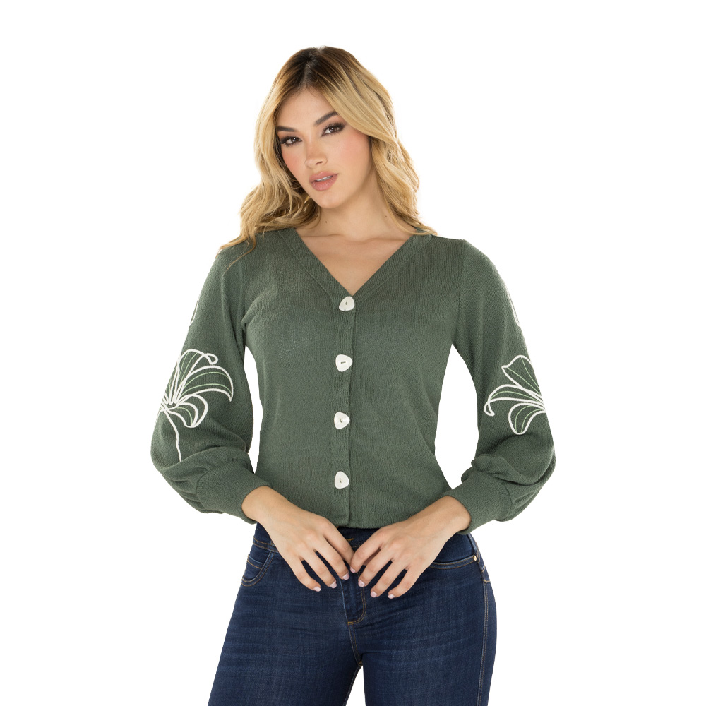 El toque ligero que envuelve tu poder y resalta tu elegancia natural. | – Color verde salvia: calma, frescura y sofisticación. – Tela de fibra sintética: textura suave y liviana para máxima comodidad. – Fit cardigan: ideal para capas versátiles y chic. Vive la elegancia relajada con esencia Mujerón.