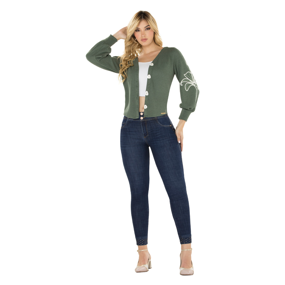El Jean SINCELEJO fue diseñado para mujeres que destacan con confianza. Su fit tiro alto resalta la forma natural de tu cuerpo, brindando soporte y estilo en un solo movimiento. El índigo súper licrado se adapta a ti como una segunda piel, combinando confort y estructura.