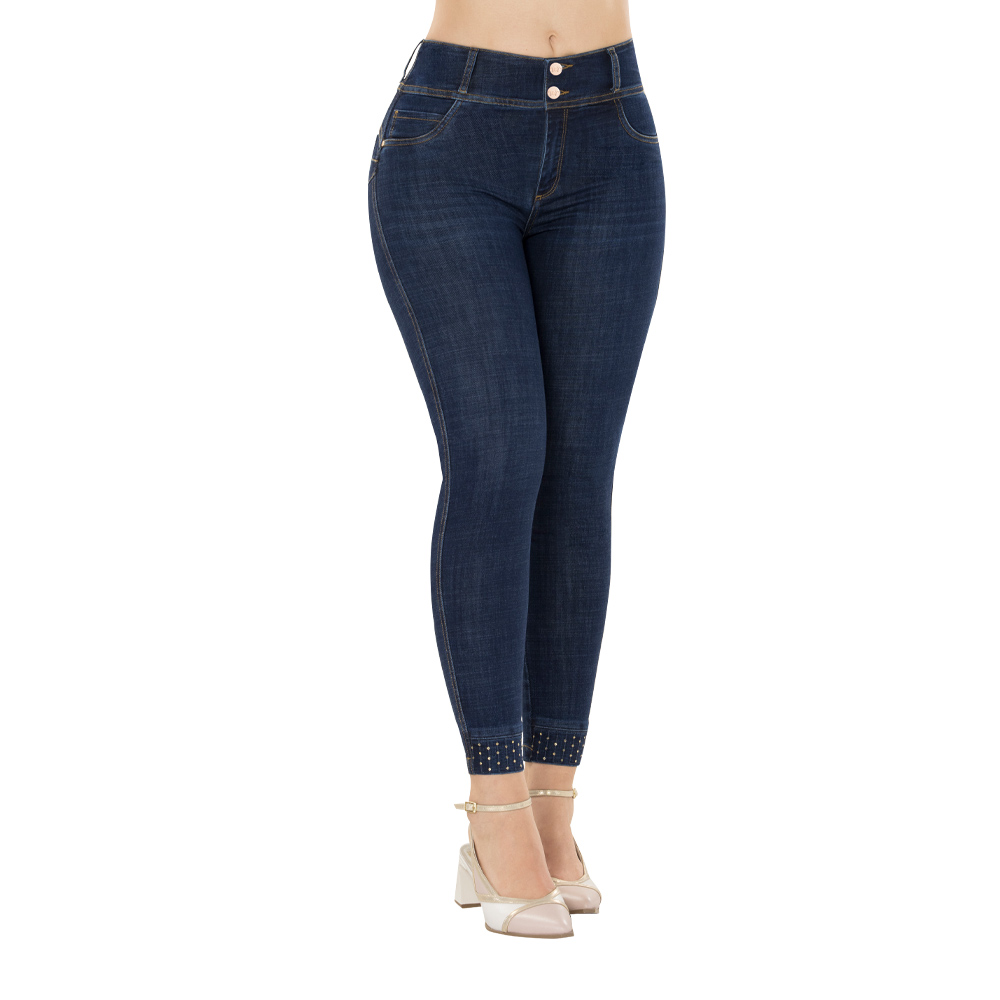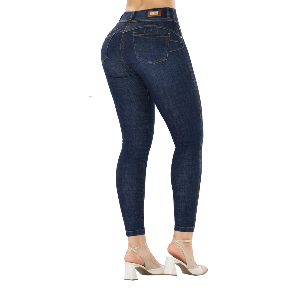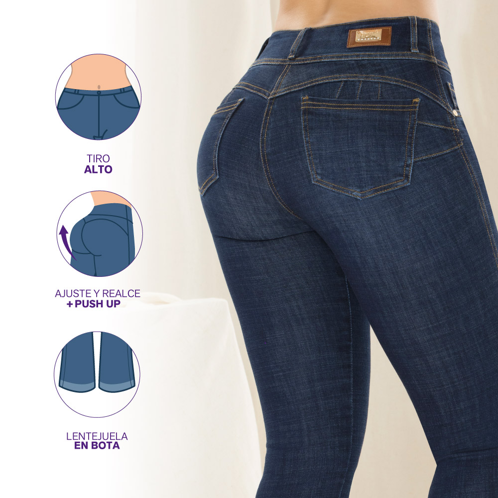 El jean clásico que realza tu figura y empodera tu presencia. | – Tiro alto: define tu cintura y estiliza la silueta. – Índigo súper licrado: ajuste perfecto con libertad total. – Color azul oscuro: elegancia atemporal y versatilidad infinita. Siente el poder de verte increíble, todos los días.