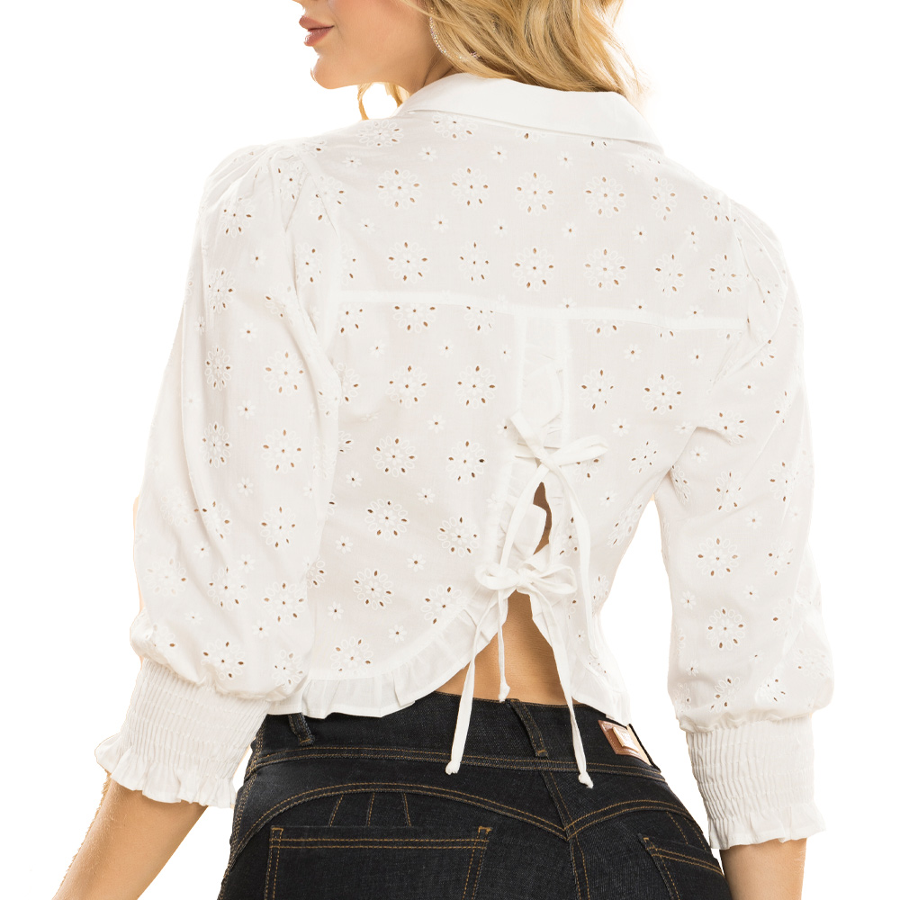 Eleva tu estilo con la blusa que combina elegancia y comodidad. | – Fit confort que brinda libertad y suavidad al usarla. – Tela popelina con guipure: textura ligera con detalles sofisticados. – Color hueso versátil y elegante para cualquier ocasión. Vive la confianza y feminidad Mujerón.