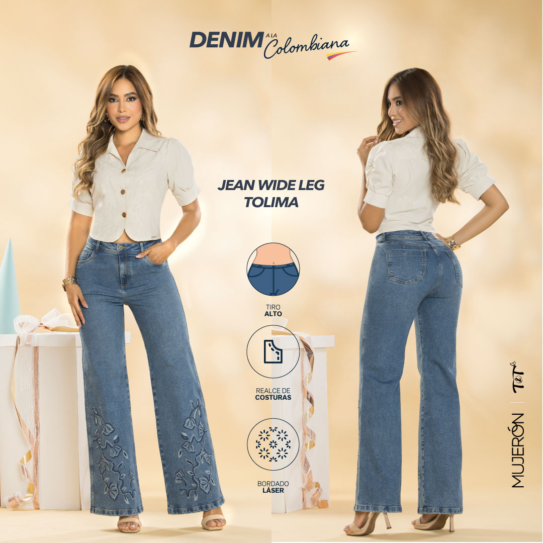 Los jeans TOLIMA están pensados para mujeres que buscan destacar con actitud y elegancia. Su fit Wide Leg de tiro alto alarga la silueta mientras aporta movimiento y sofisticación. La tela índigo licrado garantiza ajuste perfecto y comodidad durante todo el día, mientras que el tono azul vintage aporta un aire moderno y versátil, ideal para múltiples combinaciones.