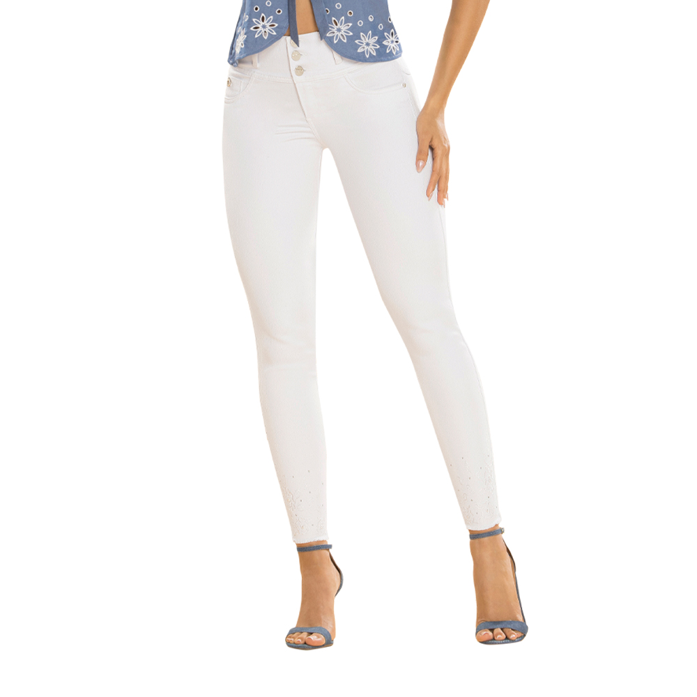 Destaca con el jean que combina elegancia y comodidad con actitud. | – Fit tobillero de tiro alto que estiliza la figura y define la silueta. – Color blanco: sofisticado, moderno y versátil. – Tela índigo pesado piel de durazno: suave, firme y cómoda para todo el día. Vive tu estilo con seguridad y elegancia Mujerón.