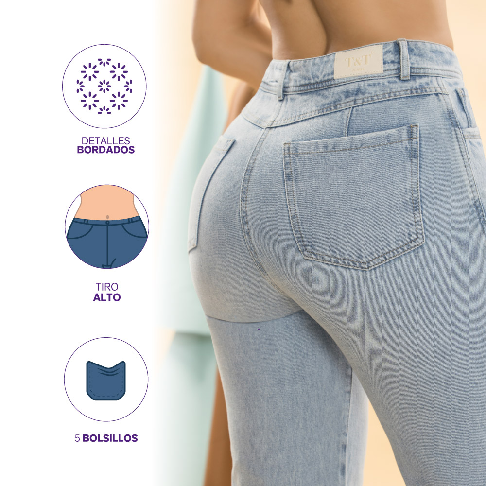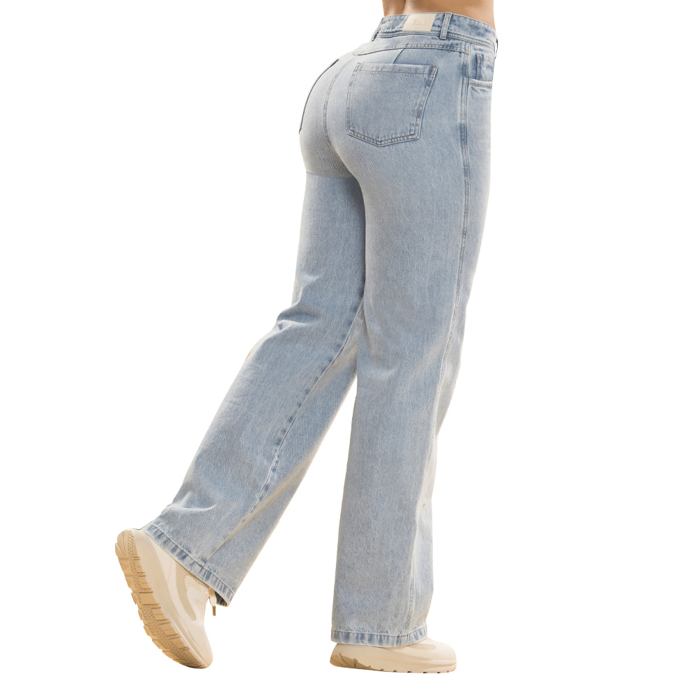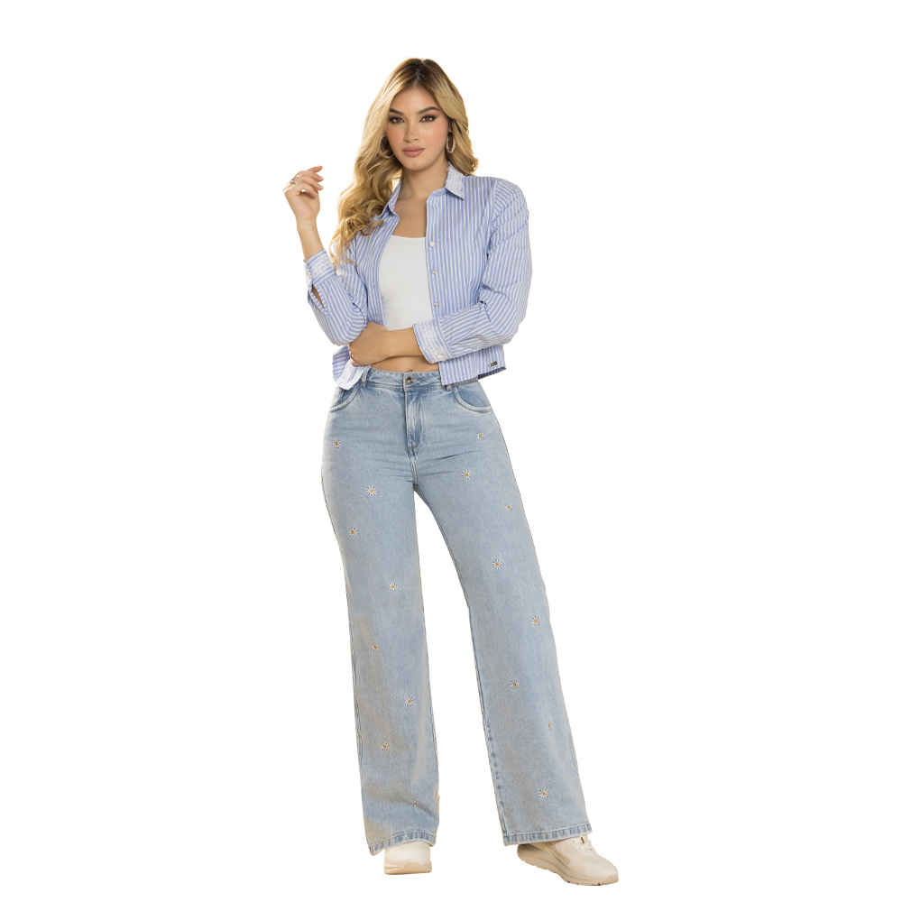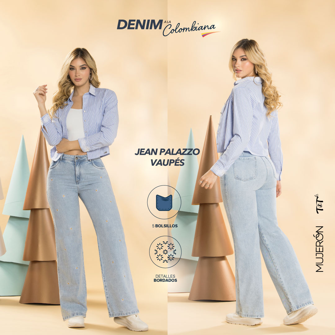 Destaca con el palazzo que combina estilo y actitud con frescura. | – Fit Jeans Palazzo de tiro alto que estiliza y alarga la silueta. – Color azul hielo: moderno, luminoso y versátil. – Tela índigo rígido que aporta estructura y firmeza. Vive tu elegancia y confianza con el toque Mujerón.