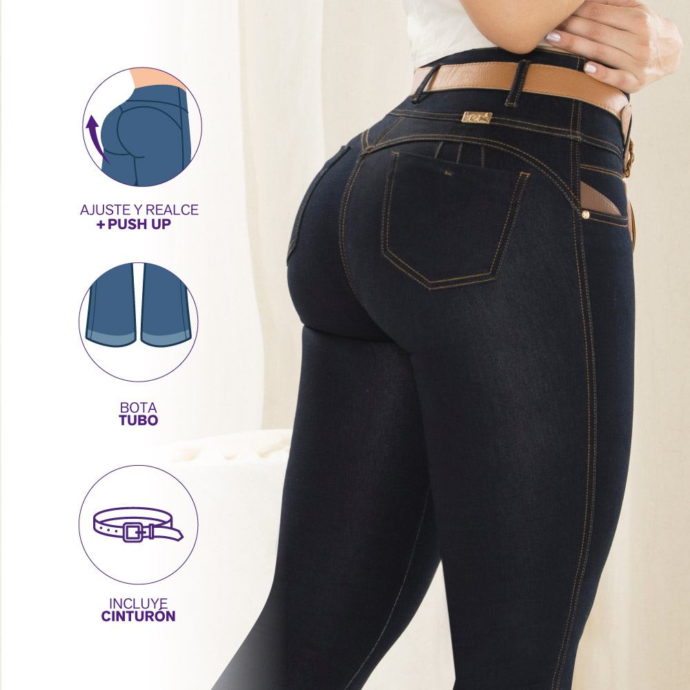 Destaca con el jean que combina elegancia, comodidad y actitud. | – Fit jean de tiro alto que estiliza y define la figura. – Color azul noche: profundo, versátil y moderno. – Tela índigo pesado piel de durazno: suave, firme y cómoda para todo el día. Vive tu estilo con confianza y seguridad Mujerón.